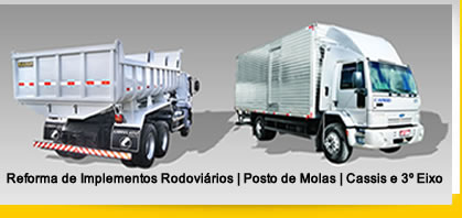 Assistência técnica especializada de profissionais bem treinados e equipamentos de última geração para executar serviços de fabricação, instalação, manutenção e reforma de implementos rodoviários alinhamento bem como molejo em geral.